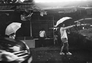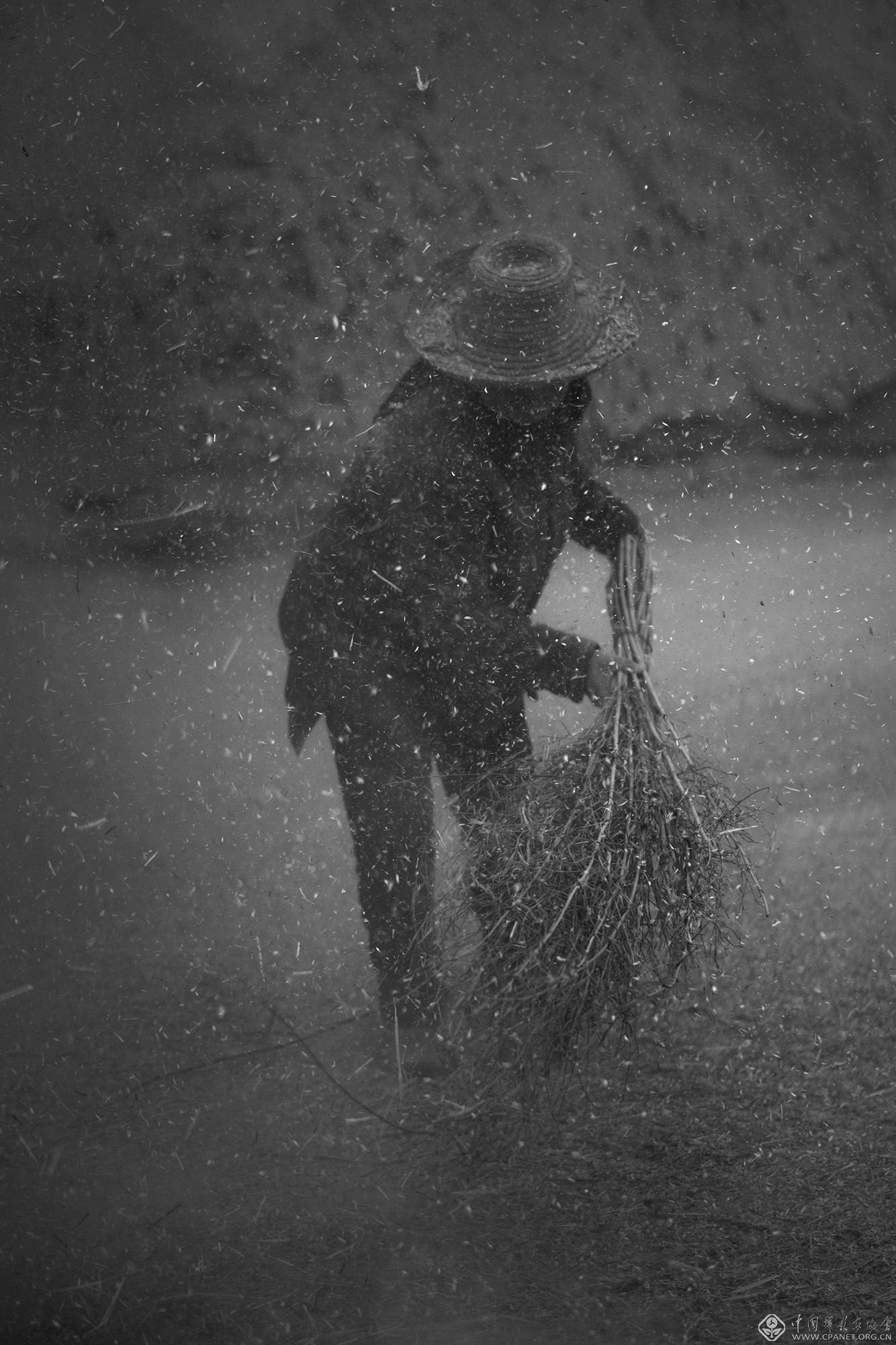 谢文昊——《雨人》——作品阐释: 一次偶然的大雨,让我见识到雨水在闪光灯下的奇幻效果,之后便迷上了雨天拍照。我觉得黑白会更适合雨天阴暗灰沉的感觉,画面也更纯粹,仿佛使得同一人与物不再一样了。
