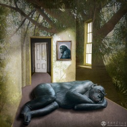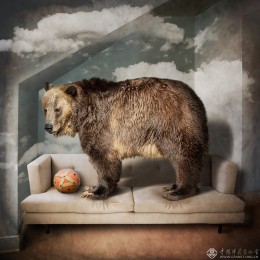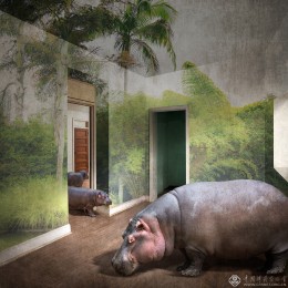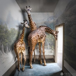 动物比我们想象中更具有感情,它们能够找到适合自己的生存之道,但人类总是按照自己的想象来对待它们。在卡萝尔·艾尔布的《圈养动物肖像》中,把动物被从它们赖以生存的自然环境强行安置在人类自以为舒适的室内空间中,它们只能从墙上的壁画想象曾经的家园。我们将一些生命称之为动物,但我们常常忘了人类自身也是动物。也许当我们与动物的角色互换,才能明白人类对待其他生命有多残忍。这组作品与其说是反思人类对待其他生命的态度,不如说是对人类自身生存困境的叩问,出来混总归是要还的……(刘宇)