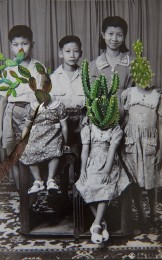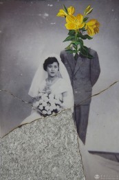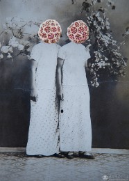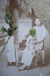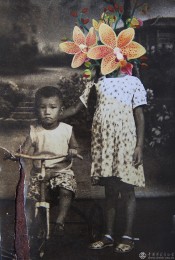 这些照片来自二手市场淘来的老照片,收集的过程持续近一年的时间,每周末穿梭在北京潘家园,大部分照片距离现在50-95年。片中的人完全是陌生的,它们随着时间被生活尘封或者遗忘,凝视着他们的精神面容、着装或是残留的痕迹和裂缝,经常会使我内心一而再、再而三地感到惊叹,甚至产生深深的迷恋。它们在过去的时间里被继续留存下来,消除了原有的谄媚、主张、夸张,那些流逝的旧日时光,它们在来自遥远生命的记忆里依然散发着历经时间雕磨之后属于自己独特的光芒,仿佛一切在此刻凝固。为了使抽象的主题得道更融洽更独特的表达方式,嵌入视阈中的创作媒介呈现方式突破摄影的界限,绘画、装置、摄影多种媒介材料进行融入:首先对老照片进行逐次筛选、翻拍,冲洗放大至合理的尺寸,然后使用丙烯进行手工绘画。