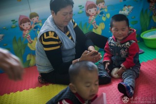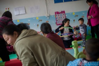 刘莉带着双胞胎儿子在养育中心参加活动。刘莉曾在北京打了十年工,怀孕后回到老家专职照顾孩子。现在,刘莉的爱人在江苏打工,公公在村上种地,平日里她和婆婆俩人照顾孩子。在外面闯荡过的刘莉和老人的教育观念不尽相同,此前也闹过矛盾。去年,她和婆婆一起报名参加了养育中心,“最大的收获就是这里会教育家长和孩子都要学会分享。”