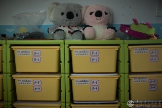 在养育中心,每周一到每周五都会有各种课程。其中,周三会专门从外面请养育师,对家长和孩子进行一对一的辅导。这些箱子里装的就是每个家庭的辅导资料。