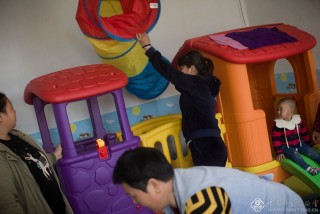 养育中心坐落在村子的国道旁边,面积60平方米。每个养育中心的硬件配套和城里孩子常去的儿童乐园相似,内有滑梯、海洋球、积木、绘本等。不同之处在于,养育中心关注的第一主角是成人:每个带孩子前来的大人都要登记身份以及逗留时间,他们能轻松找到最适合孩子看的书,每本书上都标注有最适合阅读的年龄。此外,大人们还可以把中心里的绘本和玩具借回家。