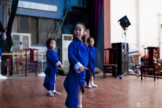 李老师正在给娃娃们说戏,一个台步、一个手势、一个眼神都会反复指导很多次。
