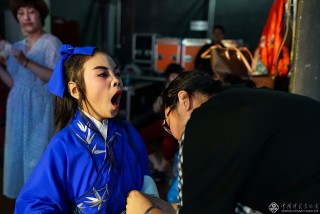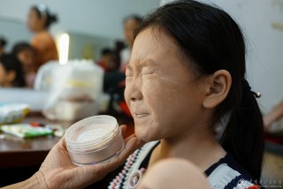 韩彧可今年7岁,学习评剧半年多了,这是她第10次化妆。