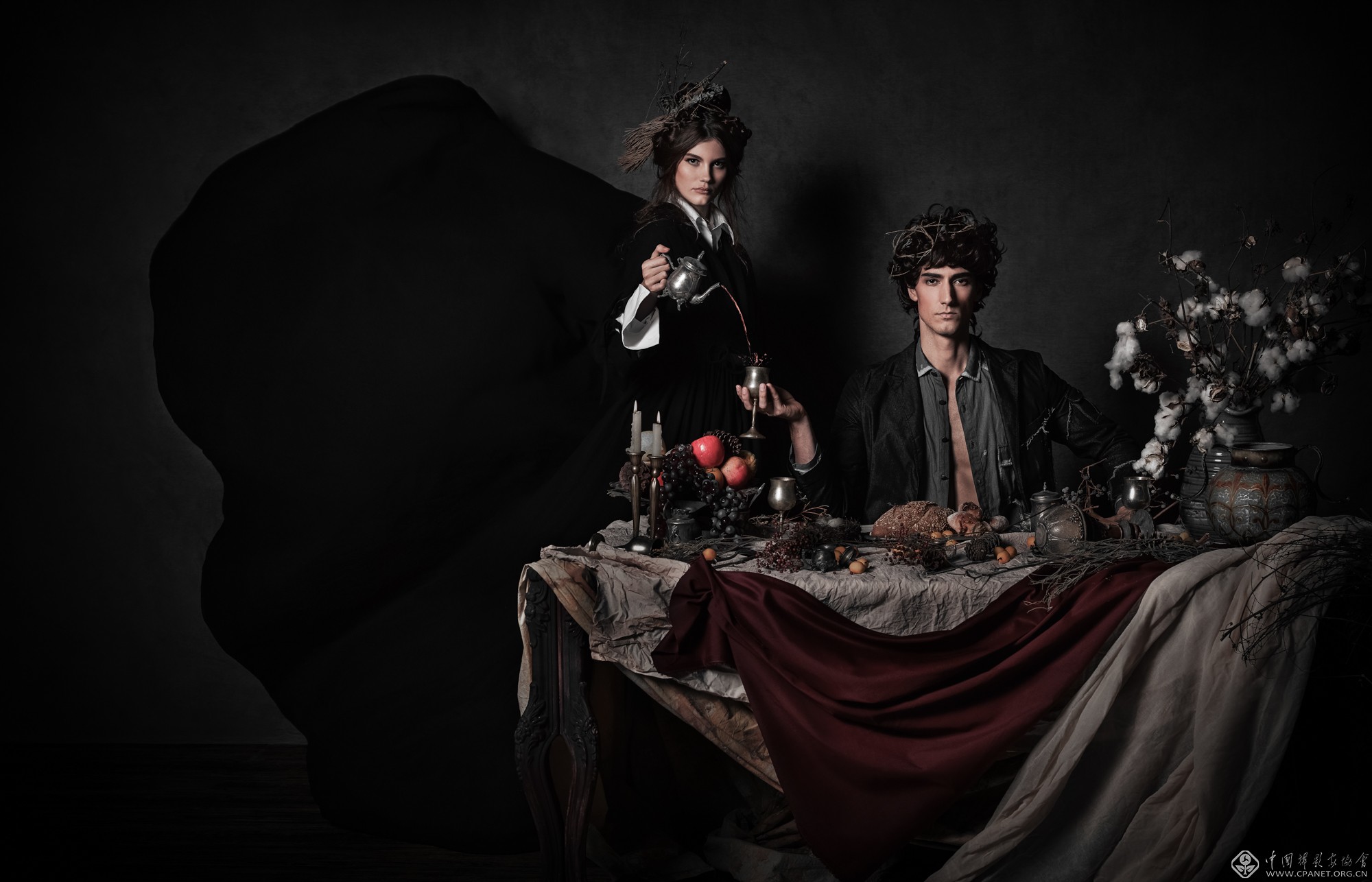 战争:这幅照片是和一个朋友也是服装设计师一起合作的,主题描述的是战争前和战争后的感受。之前我看了一组反映难民的纪录片,内心非常悲伤,所以想拍摄一组这样的片子。片子大概的故事感觉是这样的:幕后的主角在权利的纷争中互相跋扈,我用隐约的红色幕布和冷漠的人物来表现。妆发是我最好的朋友Shelly和我一起设计的,我们大概把年代定在中世纪,一个中产阶级的家庭。在战争来临前,丈夫披着红色的斗篷神采奕奕地看着远方,而家庭中是嗷嗷待付的孩子和年轻的女主人,然后是他们出发前在餐桌前的祷告,和最后一次晚餐,战争的到来让我们迫不得已地面对分离和死亡。最后几张照片,战争开始后的生活,餐桌已经没有食物,女主也面临了死亡,丈夫衣衫褴褛,其实当一切都失去,生命已经变得没有意义。所以我想通过一个简单的家庭背景,映射对人生的思考,去珍惜生活,抵制战争并且心怀感恩,感恩现在我们所处的和平年代,以及发自内心的去怜悯其他在苦难中的众生。