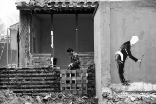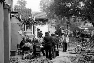工人们在拆除红线部分的建筑,住户们在一旁打着麻将。“玩”,北京人特有的气质。不管周边发生了什么,他们就是这样淡定。