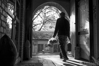 拍摄时,我放下自己的职业立场,没有了报道摄影严格的时间限制,不为完成报道任务,不为发表作品,一身轻松。放下沉重的长枪短炮,一台微单,用第三只眼去寻找应该裁剪的动态和场景,之后轻轻地按动快门。一幅幅老百姓喜、怒、哀、乐的画面,一座座老宅、老树、老门洞的光影,进入了我CF卡中。