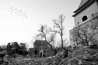 家住钟楼湾28号院的住户面对钟楼,看着已经被拆成废墟的22号院。