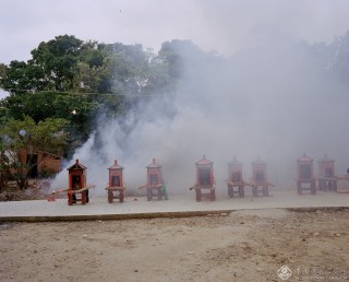 太阳底下最后一片古老的森林在齐唱着葬歌,紫色、黄色的花儿在沙滩上随风起舞,海鸥与喜鹊在乌云中伴奏,一艏艏渔般静默地等待着故乡新鲜泥土的埋葬,我以东海岛人的名义参与了这场盛大而又庄重的故乡葬礼仪式。