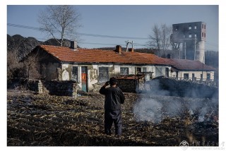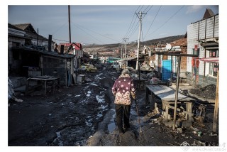 2016年3月,鸡西市滴道区,老矿区矸石山周围的棚户区的居住状况。矿工村的退休工人在矸石山附近放羊,羊群吃着枯黄玉米杆子地里吃干草。在此种地与牧羊的人极少会考虑是否有土地污染之类的问题,有地先种上,再养些牲口,把日子熬过去再说。居民冬天的取暖靠着去捡煤块回家烧抗。