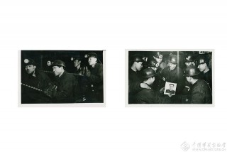 老照片。左图为矿工肖像,右图为摆拍宣传照片,展现矿工思想面貌。