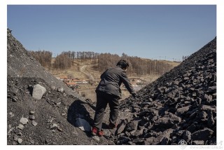 鸡西市滴道区六井的煤泥山,附近的居民冒着被保安驱赶的危险来此找能用的煤块,这是他们冬天取暖烧炕的必备品,市场上有高质量的精煤出售,但是矿区留守的居民几乎不会买。