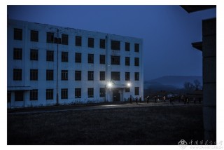 2016年3月鸡西市滴道区,六井矿区的居民在废弃的大楼前跳舞,曾经这栋建筑竣工后是所学校,之后被洗煤厂租去,没过多久变成空置,至今大概将近3年。因为大楼保持着灯光的供电,附近留守矿区的居民晚饭后往往聚集在此跳广场舞。跳舞的人群中,男人很少,更多的是留守矿区的中老年人。