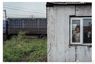 2017年6月,七台河市茄子河区,一个小女孩从住的房子向外张望,房子临街,时常有拉煤卡车经过。按照规划,这个地区将在这一两年搬迁到附近人口更密集的镇上,家长带她上幼儿园能节省很多时间。