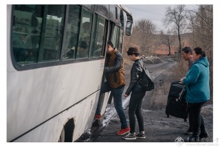 从鸡西市区开往矿区的班车。当地居民间流传,2015-2016年,鸡西市户籍迁出人口为6万。矿区居民在16年初的一段时间里甚至无法使用医保卡买药,原因是当地矿务局无法支付医保费用。