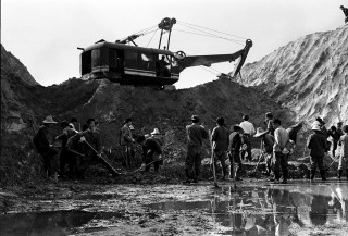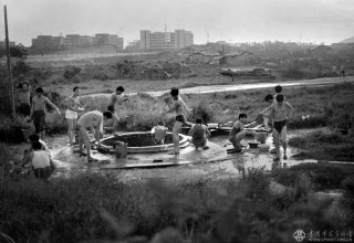 银湖到深圳河的排洪暗渠形如一条地下长龙,是基建工程部队修建的民心工程。1982年。