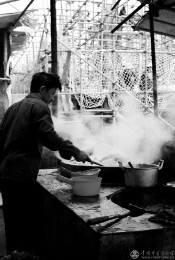 为减少战士们中午吃饭路途奔波劳累,连队把火房搬到了工地。