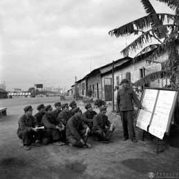 1983年,战士们在没有吊车的情况下,自己想法解决重型材料的装卸工作。
