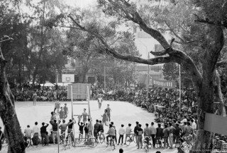 乡村篮球赛。1986年春节,寮步镇篮球场举行广东省女篮与寮步镇男篮友谊赛。刘松泰摄影