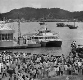 1984年东莞开通虎门(太平)至香港的直达客运航班。图为流花湖客轮启航现场。陈德容摄于1984年。