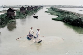 1998年长安镇厦岗村村民在海边河涌捕鱼。陈康水摄影