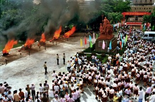 虎门再销烟。2002年,东莞在虎门鸦片战争博馆举行销毁毒品活动。陈健枝摄影