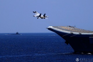 2018年4月中旬,辽宁舰编队在某海域进行训练。胡锴冰 摄