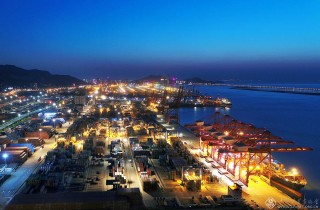 2017年6月6日,江苏省连云港港集装箱码头灯火阑珊一片繁忙景象。王健民摄