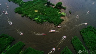 2018年6月16日,在素有“华北明珠”之称的白洋淀,十几条快艇劈风斩浪穿行在星罗棋布的芦苇荡,带领游客感受以水、沼泽、芦苇、荷花、香蒲为主要景观的原生态。白洋淀是河北省最大的湖泊,总面积336平方公里,现有大小淀泊143个,主体位于雄安新区安新县、容城县、雄县境内。季春红摄