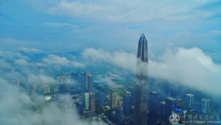2016年10月1日,无人机航拍高耸入云的深圳新地标——平安国际金融中心大厦,其总高度为600米。黄波摄