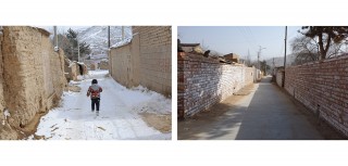 右图:2016年2月,我拍摄的故乡全景。对比中可以看到故乡和几十年前并没有很大变化。远处只有零散的几户村民盖起了二层楼房,还有一座座上个世纪八十年代建造的土坯房,现都已成危房,时至今日,村里只有少数村民盖了砖瓦房,家庭条件好的搬进了城里。