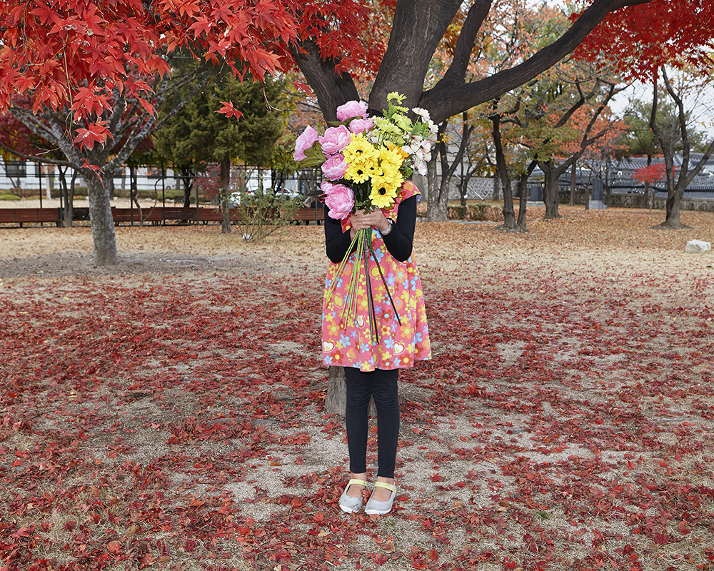 我们生活在一个充满谎言、自以为是的世界中。该摄影作品的标题为《塑胶眼泪》,意即人造的虚假泪水。在生活中,我开始不断思索人类的谎言、欺骗、真相和道德。有时候,我会摸摸那些装饰的花朵,因为它们看起来很真实。真假插花、拉近关系的花朵都象征着另一副隐藏的面孔,人们不愿以真实的面孔同这个世界坦诚相见。人们往往会隐藏他们想要隐藏的内容,只展示他们想要炫耀的部分。而该作品就是对真诚探索的一种表达。