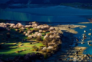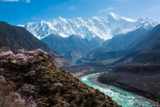 《南迦巴瓦峰的春天》 清澈的雅鲁藏布江蜿蜒流过,两岸桃花恣意盛开,映照着南迦巴瓦峰少女般的白皙面庞。2018年4月7日拍摄于西藏索松村。李浩摄