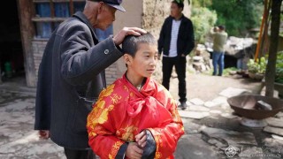 武都:村里的老人看了杨建鹏的表演,摸着他的头说,这娃绝对是头人的苗子。李舸 摄