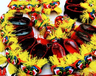 《虎头鞋》虎头鞋是一种极具乡土气息的民间工艺品,有驱邪、祈福的美好寓意,可穿着,也可当玩具。如今会做虎头鞋的老人越来越少。2018年4月4日拍于江苏沭阳“非遗大会” 。王建梅 摄