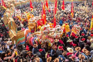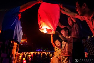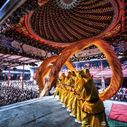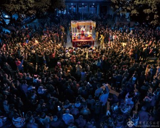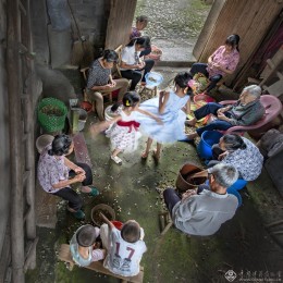 《板凳龙贺春》摄影于福建周宁县鲤鱼溪,这里”鱼冢、鱼葬、鱼祭文“为核心的护鱼习俗也被列入了福建省非物质文化遗产名,而每年三月初三定为鱼祭日,其中重要的一个活动是千米板凳龙,犹如一条彩色巨龙在鲤鱼溪舞动起来,十分壮观。板凳龙贺春李乾浩 摄影