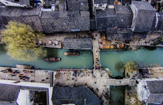 《印象江南》摄影于浙江南浔,南浔古镇位于湖州市南浔区,地处江浙沪两省一市交界处。明清时期为江南蚕丝名镇,是一个人文资源充足、中西建筑合璧的江南古镇。春天绿意盎然的时季,人们来到这里游玩,从空中观看有小桥、柳树、流水、船坞、客栈。一幅热闹的江南景象。《映像江南》李乾浩