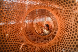 张晓玲,作品名称《淬火》;作品内容简介:景德镇陶瓷制作工艺已有悠久的历史,陶工用传统的技艺手工制作瓷器,现在对制陶工艺流程已经加入许多先进的技术元素,让工人从繁重的体力劳动中解脱出来,照片反映的是工人把陶胚推入电烤箱烧制成型。