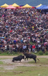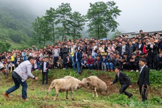 2018年6月18日拍摄于云南省昭通市镇雄县花山乡,表现当地极具特色的传统文艺节目——斗羊的精彩瞬间。花山乡是苗族彝族聚居地,每年的花山节和火把节都会举办各种精彩的活动,吸引了大批的游客前来围观,和大家一起分享彝家和苗家的幸福新生活。李东旭