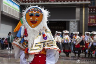 藏戏的藏语名叫“阿吉拉姆”, 2006年被列入国家级非物质文化遗产,2009年被联合国教科文组织认定为世界级非物质文化遗产,图为藏戏表演者盛装出演。2018年5月摄于西藏昌都《藏戏》李龙乾摄