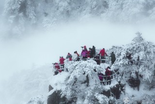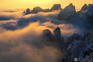 黄山不仅平均气温较低,而且由于黄山地势高耸,其温度又随地势升高而递减。半山寺、云谷寺一线以下,四季还比较分明;其上(包括光明顶、玉屏楼、北海),春、夏、秋三季只有140天左右,其余皆为冬季。黄山季节还比平原来得迟,“高处不胜寒”,黄山冬冷,历时又长,春天总是姗姗来迟。冬雪黄山潘成 摄影
