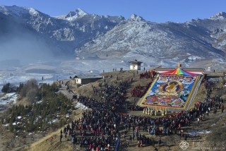 晒大佛是藏传佛教寺院所举行的传统法事活动,流行于西藏自治区、甘肃、青海、四川等地农区。《晒大佛》王留义 摄