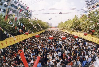 2004年,六盘水第一次大型抽奖活动场景热闹非凡。_