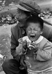 17、 爷爷的 彩票没有中奖 -1992年,青海省格尔木市,这位老人带着孙子摸彩票之后。于文国摄