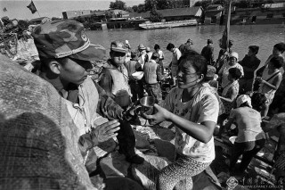 21、 洪水来了---1998年,长江大堤九江段决堤,九江市西城区市民紧急撤离。于文国摄