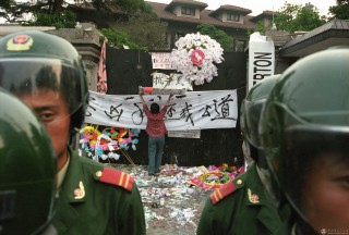 26、 还我公道!--- 1999年中国驻南联盟大使馆被炸之后的上海美国大使馆门前。于文国摄