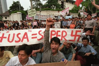 27、 愤怒的中国人--- 1999年我南联盟大使馆被炸之后的上海美国大使馆门前。于文国摄1