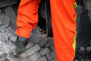 32、 分秒必争-- 2008年5月16日7时26分映秀镇的地震废墟。 于文国摄