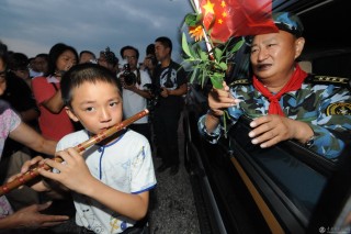 34、 笛声道情-- 2008年7月23日6时,首批抗震救援部队撤离灾区。 于文国摄