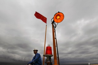 40、 南海油工---2016年12月,南海海面,石油井架上的一位机械师眺望远方。于文国摄